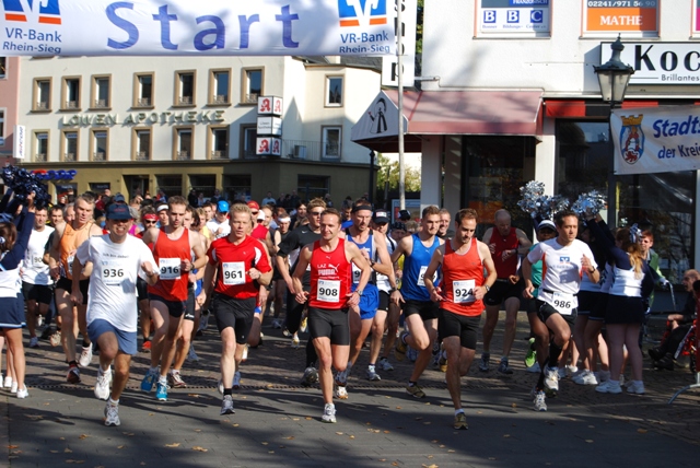 Neben dem Hauptlauf, der um 15:00 Uhr auf dem Marktplatz in Siegburg gestartet wird und sicherlich den Höhepunkt der Lauf-Cup-Serie bildet wird es aber auch in allen weiteren Läufen um die Siegburger Stadtmeisterschaft gehen. Der erste Startschuss wird um 14:00 Uhr zum Start der Bambinis ab Jg. 2001 über 360m zu hören sein. Die Schülerläufe über 2,1 km werden um 14:15 Uhr gestartet, während der Startschuss zum Jedermanns- und Firmenlauf über 5,7 km um 16:30 Uhr erfolgen wird. Kinder und Jugendliche können sich neben dem Laufevent aber auch im Kistenklettern der Feuerwehr messen oder den Trommelklängen der Samba-Läuse aus Hennef lauschen.