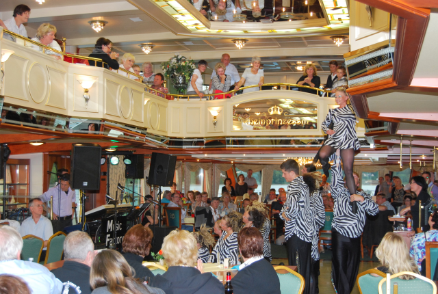 Nach den Begrüßungsworten an Bord von Bürgermeister Franz Huhn und dem Vorsitzenden des Siegburger Stadtsportverbandes Heinz Siebertz hieß es wieder Leinen los und Franz Huhn schickte die Rheinprinzessin, das Flaggschiff der Bonner Personenschifffahrt, auf die Reise. Bei leider kühlem und leicht regnerischem Wetter fand das Außendeck, bei den Sportlern in diesem Jahr nur selten Zuspruch. Dafür ging es nach den ersten Stärkungen aber unter Deck bald heiß her. Die Band “Musik-Factory“ aus Siegburg sorgte schnell für eine immer voller werdende Tanzfläche und tolle Stimmung an Bord., die nur noch den Auftritt der Husaren Schwarz-Weiß getoppt werden konnte. Mit ihrem umfangreichen tänzerischen Repertoire mit akrobatischen Einlagen sorgten sie für Standing Ovations bei allen Teilnehmern und den geladenen Gästen aus Rat und Verwaltung, unter denen erstmals mit Martin Rosorius auch einer der Bürgermeister der Stadt teilnahm.