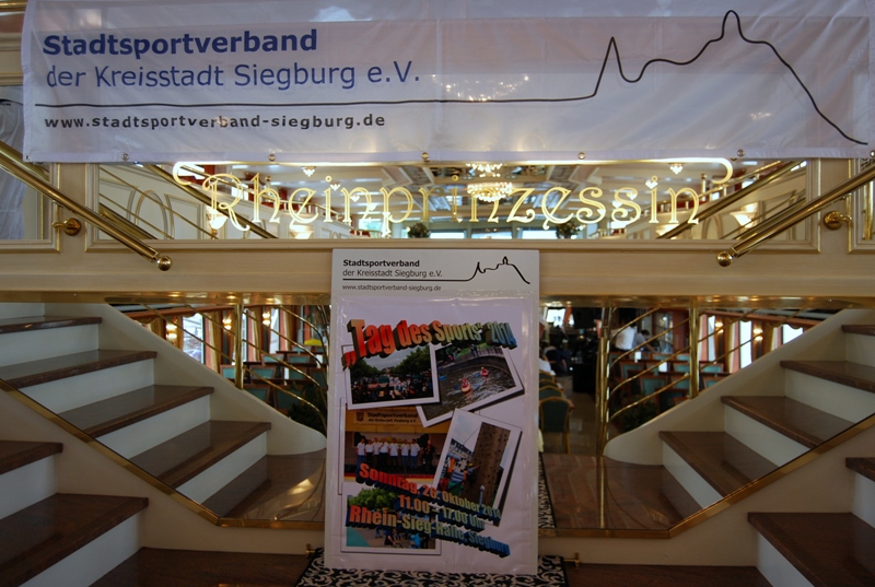 Am 13.06.2014 war es nun schon zum 19-ten Mal wieder so weit: Der Siegburger Stadtsportverband hatte alle Mitglieder der Siegburger Vereine zur alljährlichen Schiffstour auf dem Rhein eingeladen. So trafen sich ca. 210 Sportler und Sportlerinnen aus den Siegburger Sportvereinen und Vereinsabteilungen in Bonn am Fritz-Schröder-Ufer, um auf dem Fahrgastschiff “Rheinprinzessin“ einen schönen Abend zu verbringen. Nach der Begrüßung der Gäste durch den Bürgermeister Franz Huhn und dem Vorsitzenden des Stadtsportverbandes Heinz Siebertz, erschallte dann um 18:45 Uhr das Kommando „Leinen los“ und die Rheinprinzessin machte sich auf ihren Weg in Richtung Linz.