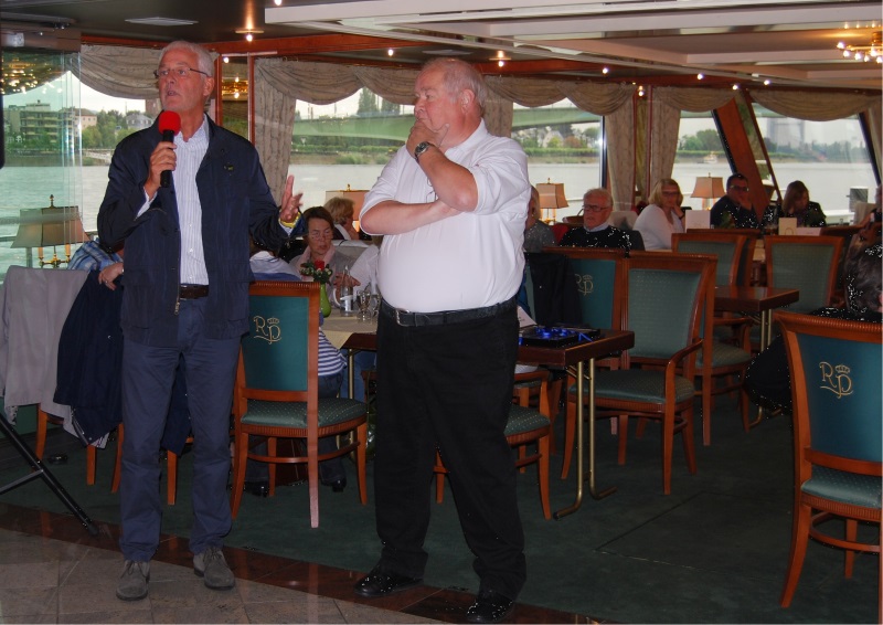 erschallte dann um 18:45 Uhr das Kommando „Leinen los“ und das Prunkschiff der BPS machte sich auf ihren Weg am Siebengebirge vorbei in Richtung Linz. Trotz des nicht so berauschenden Wetters hatte die Band “Music-Factory“ mit stimmungsvoller Partymusik die Teilnehmer schnell im Griff und bald war die in diesem Jahr vergrößerte Tanzfläche mit bewegungsfreudigen Sportlern vollständig gefüllt. Der Meinungsaustausch an den Tischen und die Tänze wurden nur durch die sehenswerten Auftritte der Genusstänzerinnen aus Bonn und dem “Kölner Landmetzger“ unterbrochen, der mit seinem Gesang, seinen pointierten Informationen und seiner Standsicherheit an Bord für allseits gute Laune während seiner ersten “Kreuzfahrt“ sorgte. Auch die Tombola, an der jeder Gast automatisch teilnahm und bei der man ein unter Sportlern immer willkommenes Handtuch oder sogar ein Pittermännchen für sich und den Verein gewinnen konnte, war ein weiterer Höhepunkt dieser Fahrt. Gegen 23:30 Uhr erreichte die “Rheinprinzessin“ dann wieder ihren Ausgangspunkt am Bonner Ufer und nach der fünfstündigen Fahrt, die wie immer im Fluge verging, sah man nur gutgelaunte Sportlerinnen und Sportler, die sich nach einem stimmungsvollen und gelungenen Abend an Bord wieder auf den Heimweg machten. Ob sie sich allerdings erwartungsvoll schon auf eine nächste Rheintour des Stadtsportverbandes freuen können, werden die Gespräche im Vorstand zeigen, die sich rückblickend und resümierend mit dieser Fahrt beschäftigen werden.