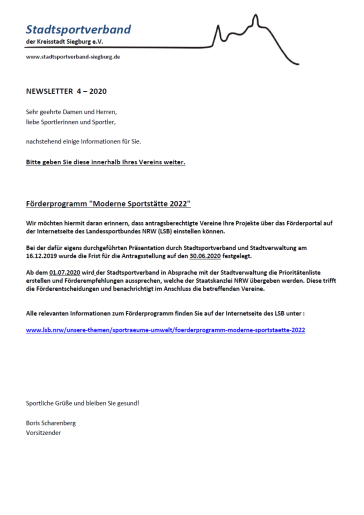 Aktuelle Informationen des Stadtsportverbands